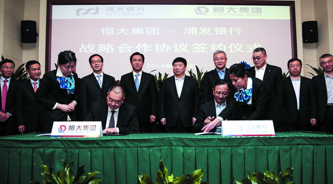 8日,上海银行、浦发银行分别与恒大签订了战略合作协议。根据协议,上海银行向恒大提供200亿授信,并与恒大在房地产、金融、医疗健康、互联网社区服务、文体等多产业板块展开全面合作;浦发银行拟向恒大提供350亿授信,并与恒大在金融服务领域展开全面合作。夏海钧总裁代表恒大签约。