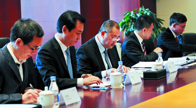 中国农业银行营销总监易映森、金融市场部总经理华若鸣、资产管理部总经理张立林、公司与投行业务部副总经理王以刚、广东分行副行长梁镜华,恒大集团副总裁许建华、潘大荣、魏克亮、恒大金融集团副总裁彭建军等高层团队共同参加了会见。